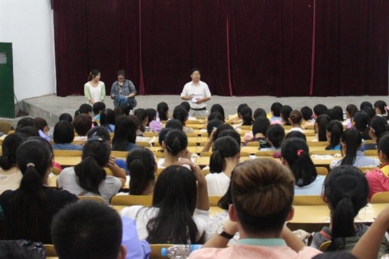 9月8日下午,威廉希尔500欧洲指数在文化路校区文工团举办2013届新生军训动员大会,党总支副书记郑颖贞,辅导员史彩霞、刘硕以及13届全体新生参加了动员大会。