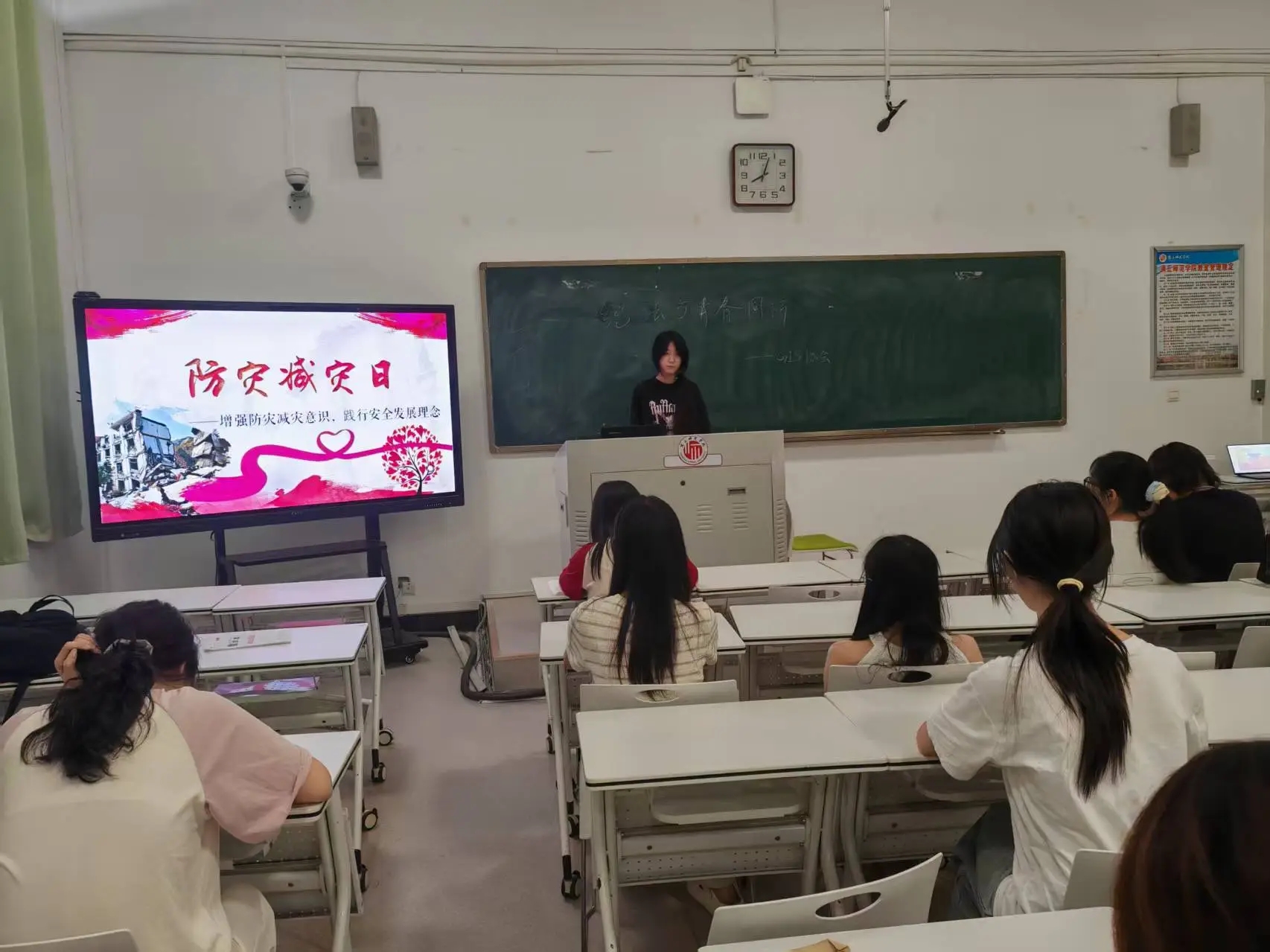 在行方楼210教室,地理信息科学班团支书程敬紧扣“人民至上、生命至上”理念,围绕“防灾减灾”主题展开宣讲。她通过图文并茂的PPT、典型灾害案例视频,系统讲解了地震、火灾、洪涝等自然灾害及事故灾难的科学应对策略。从灾害预警响应机制到“黄金自救三分钟”实操技能,从家庭防灾物资储备规范到社区应急联动要点,她以理论结合实践的方式,有效引导青年学子树牢安全底线思维,切实增强风险防范意识和能力。