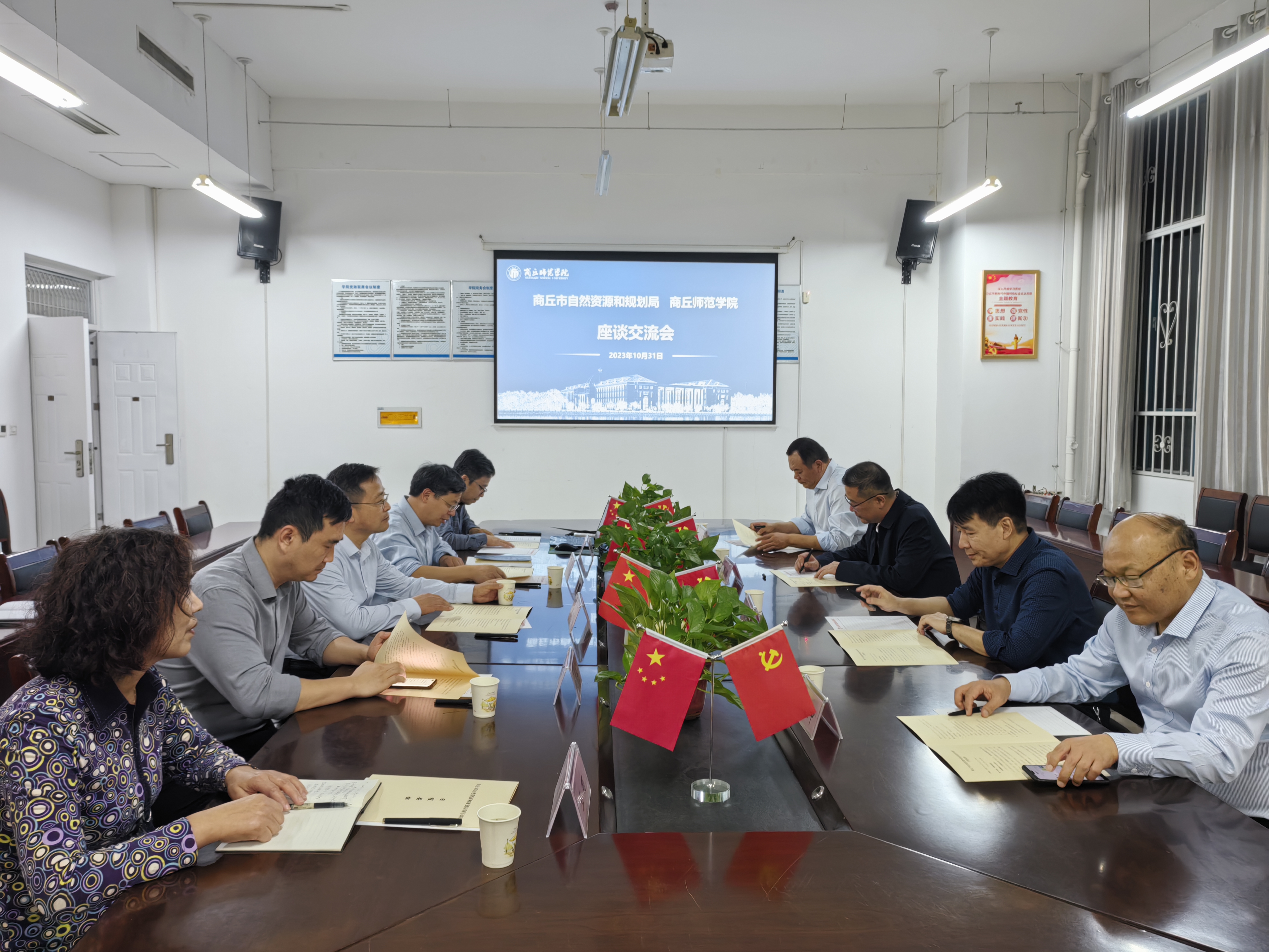 10月31日下午,商丘市自然资源和规划局党组书记、局长廖伟,驻局纪检监察组长冯晓东,总规划师柳永忠,市自然资源和规划局梁园分局局长陈国华一行四人到我校调研,副校长程功鹏,科研处处长刘澜涛和相关学院负责人参加,座谈会由刘澜涛主持。