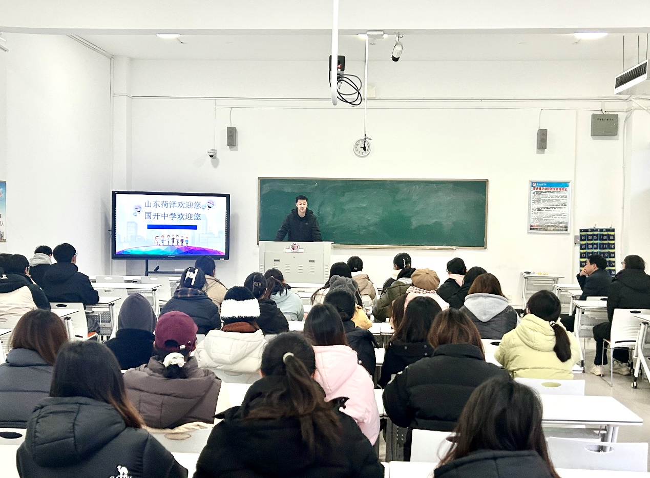 会上,菏泽国开中学校长吕杰首先向毕业生们介绍了学校的发展历程、教学理念以及未来规划。他强调,国开中学一直致力于为学生提供优质的教育资源,并期待有志于教育事业的毕业生加入他们的团队,共同推动学校的发展。随后综合办公室主任张辉介绍了学校的办学条件、工资待遇、岗位需求、工作环境等,2024届毕业生校友、国开中学教师崔敏作就业成长分享。会上毕业生与用人单位对所关心的问题进行了互相交流。