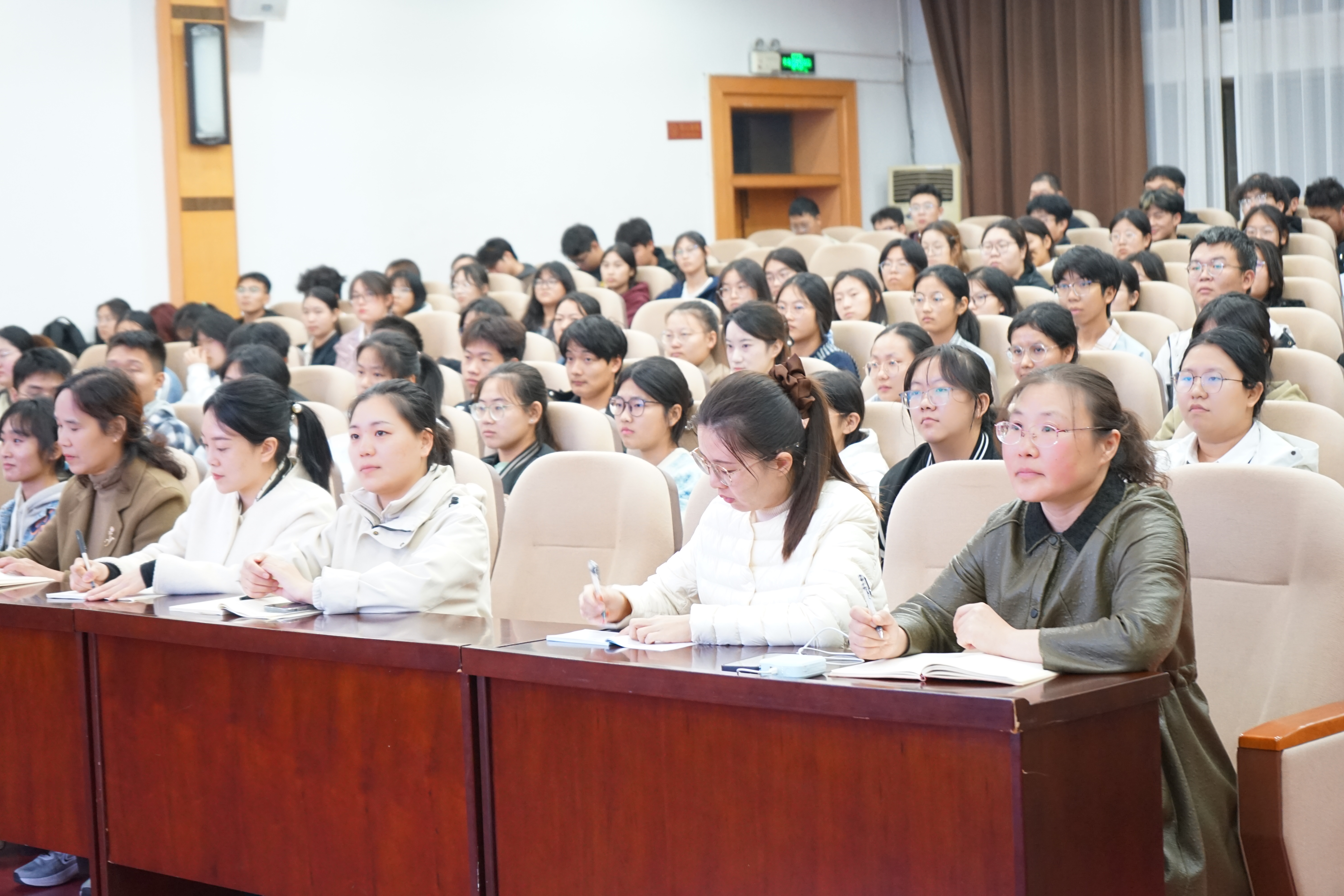 10 月 16 日晚上,校党委副书记吴金山在归德楼 113 会议室以“筑成长根基 绘青春华章”为主题,为威廉希尔500欧洲指数新生讲授了一堂开学思政第一课。威廉希尔500欧洲指数2025级277名新生和院党委书记路利、副书记王丽及全体辅导员老师参加。