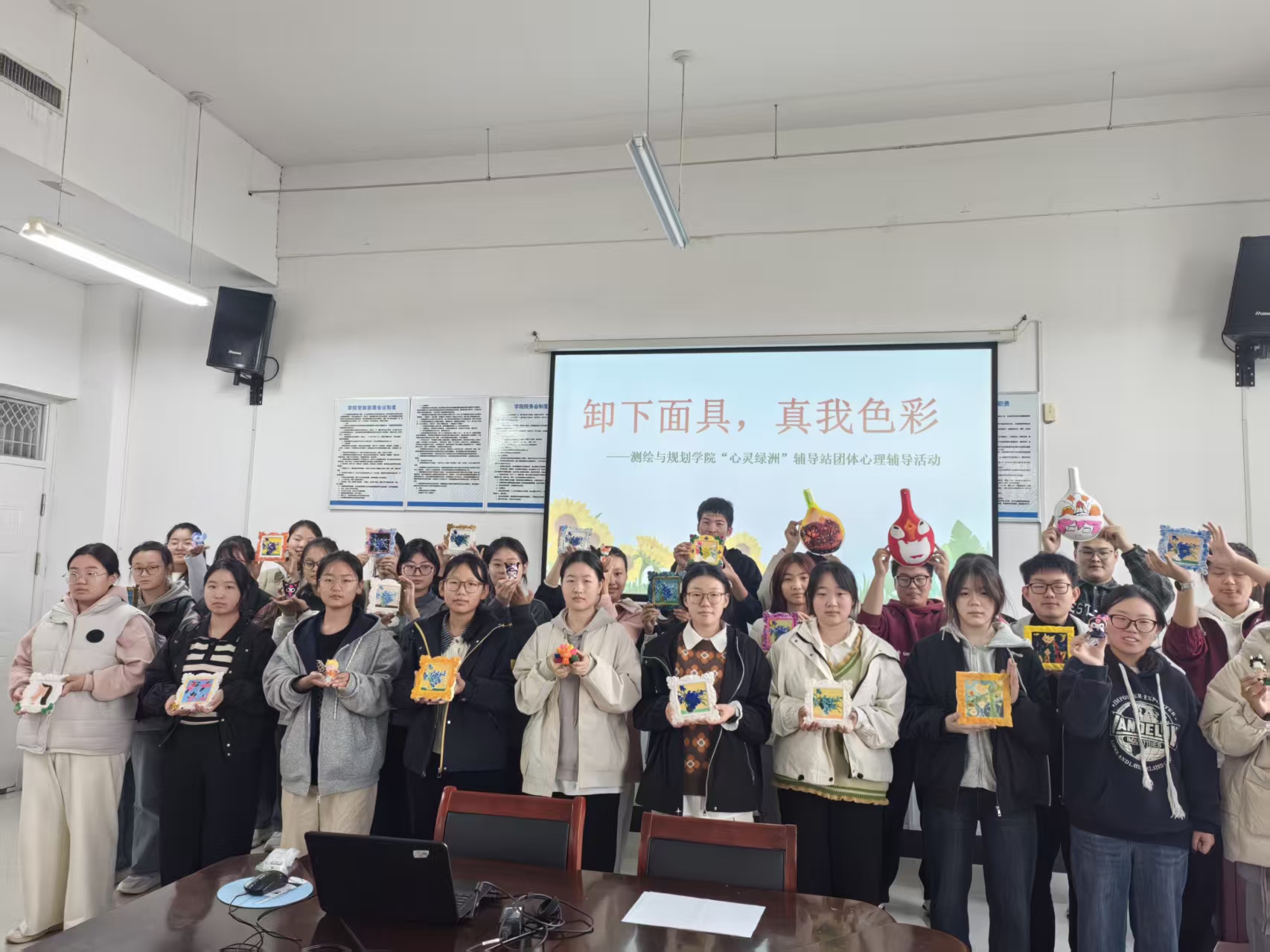 10月30日上午,威廉希尔500欧洲指数“心灵绿洲”辅导站开展“卸下面具,真我色彩”团体辅导活动,地理科学(全免)25-1班全体学生参与本次活动,活动由心灵绿洲辅导站负责人苏婉月主持。