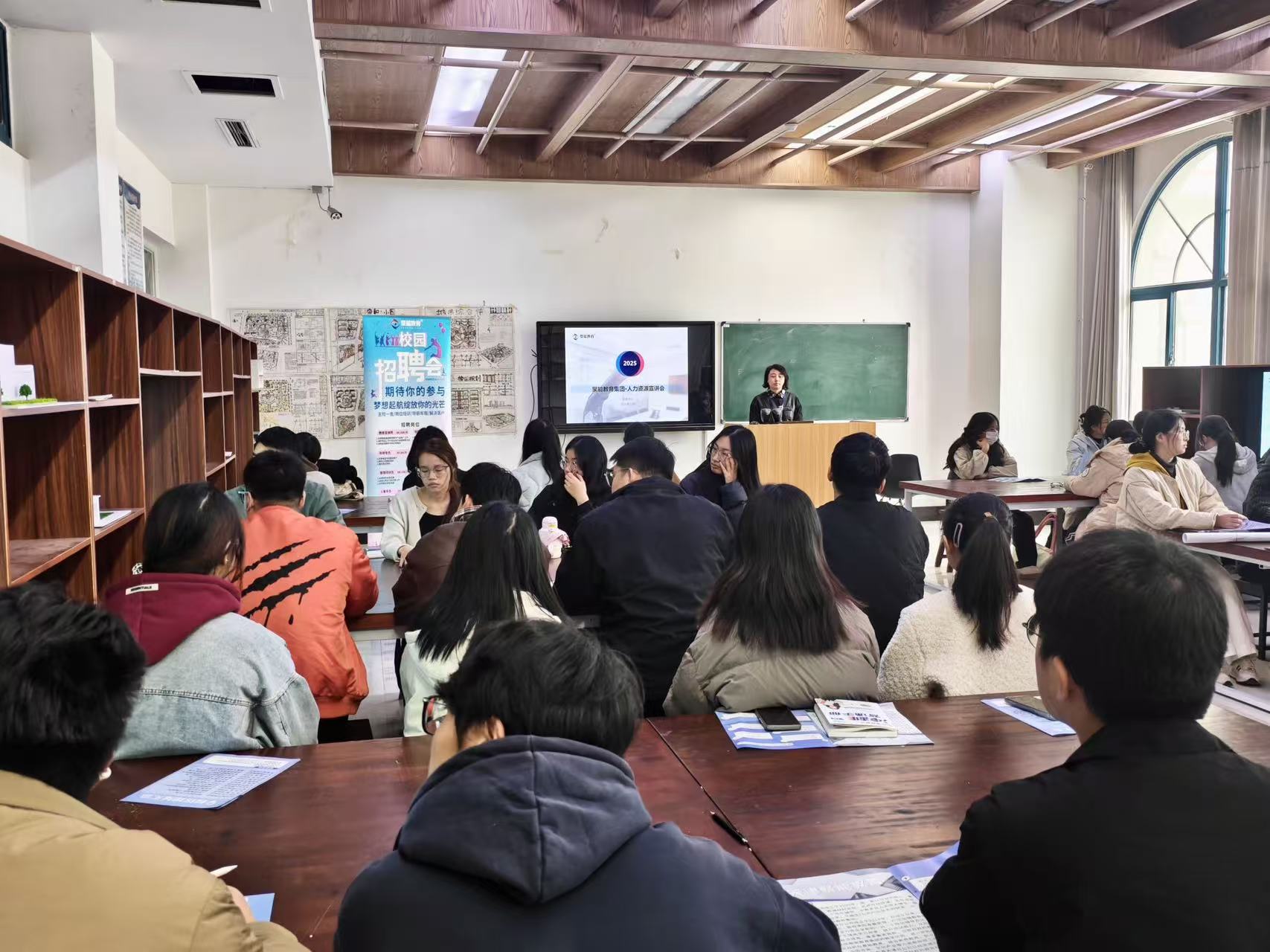 招聘会上,天津聚能教育机构人事部付老师作为主讲人,向在场毕业生全面介绍了企业情况。首先,付老师详细讲解了公司的核心运营模式,从业务板块划分、服务流程到发展规划,让学生们清晰了解企业的运作逻辑与行业定位;随后,针对毕业生最关注的岗位需求,付老师逐一列举了本次招聘的核心岗位及对应职责,帮助学生快速判断自身适配方向;最后,付老师坦诚分享了各岗位的薪资结构、福利体系及晋升路径,用透明化的待遇信息为学生就业决策提供参考。