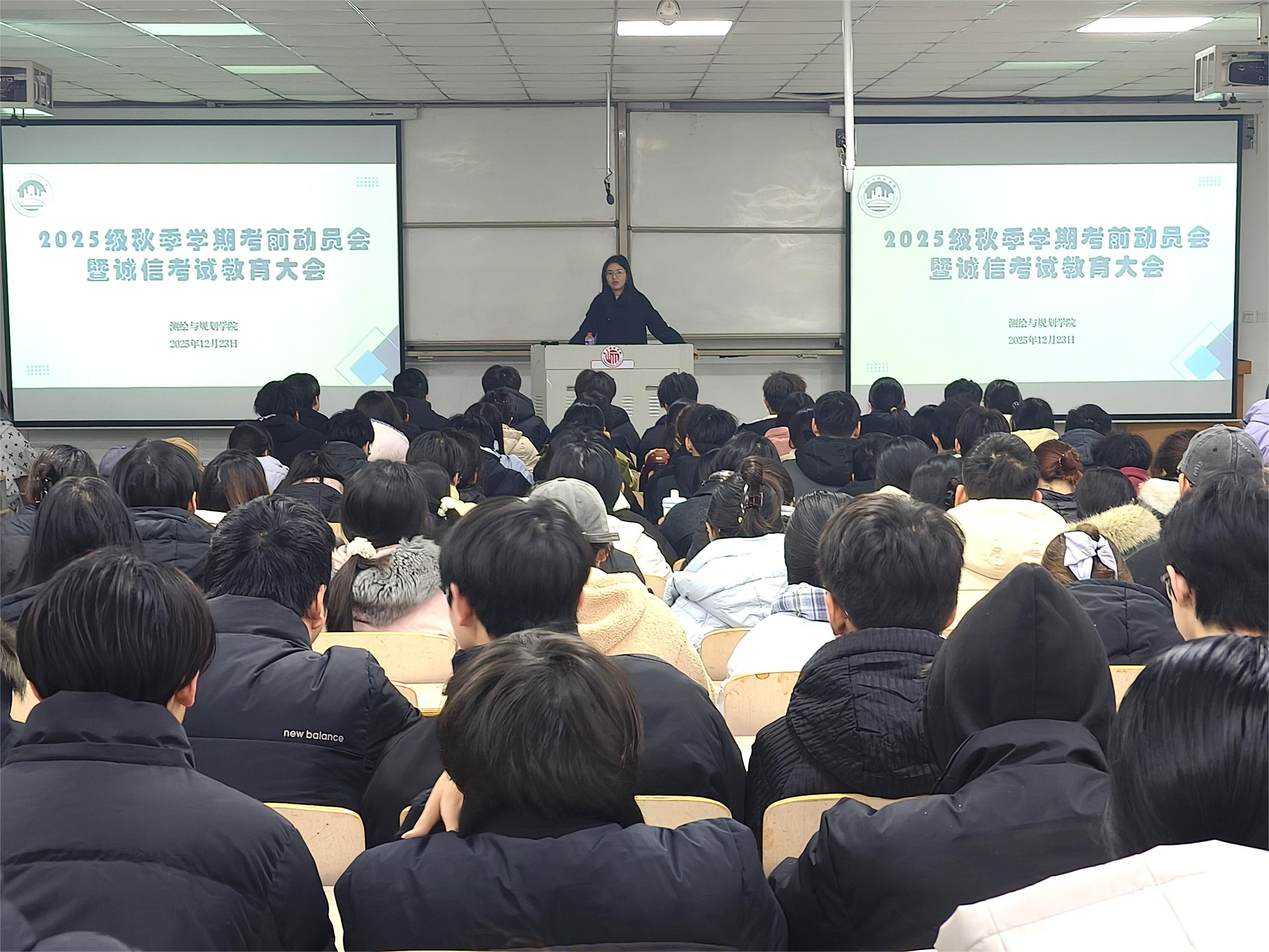 为强化学风建设,筑牢学生诚信考试观念,12月23日,威廉希尔500欧洲指数于行方楼118教室召开2025级秋季学期考前动员会暨诚信考试教育大会。威廉希尔500欧洲指数党委副书记王丽、副院长范况生、教学办主任任静晓、2025级辅导员苏婉月及2025级全体学生参会,会议由苏婉月主持。